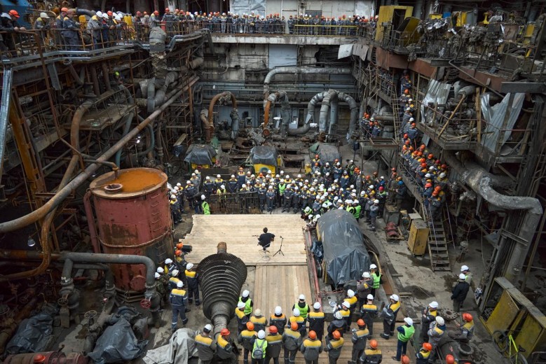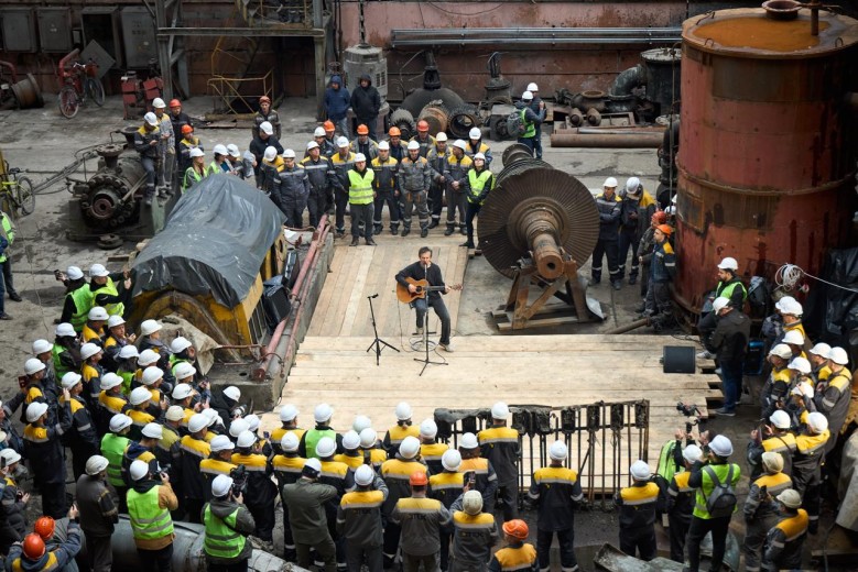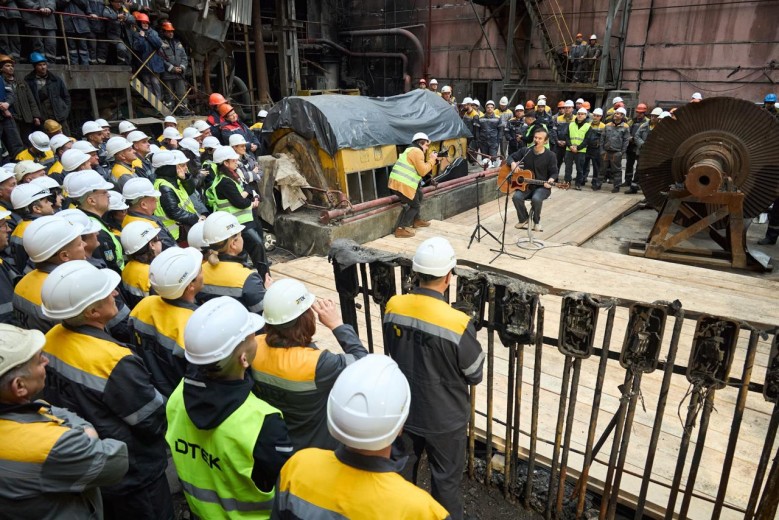 Svyatoslav Vakarchuk, frontman of the Ukrainian band Okean Elzy, has held an impromptu rock concert inside the engine room of a thermal power plant that was almost completely destroyed by russian missile attacks – highlighting his support for DTEK engineers keeping lights on across the country.