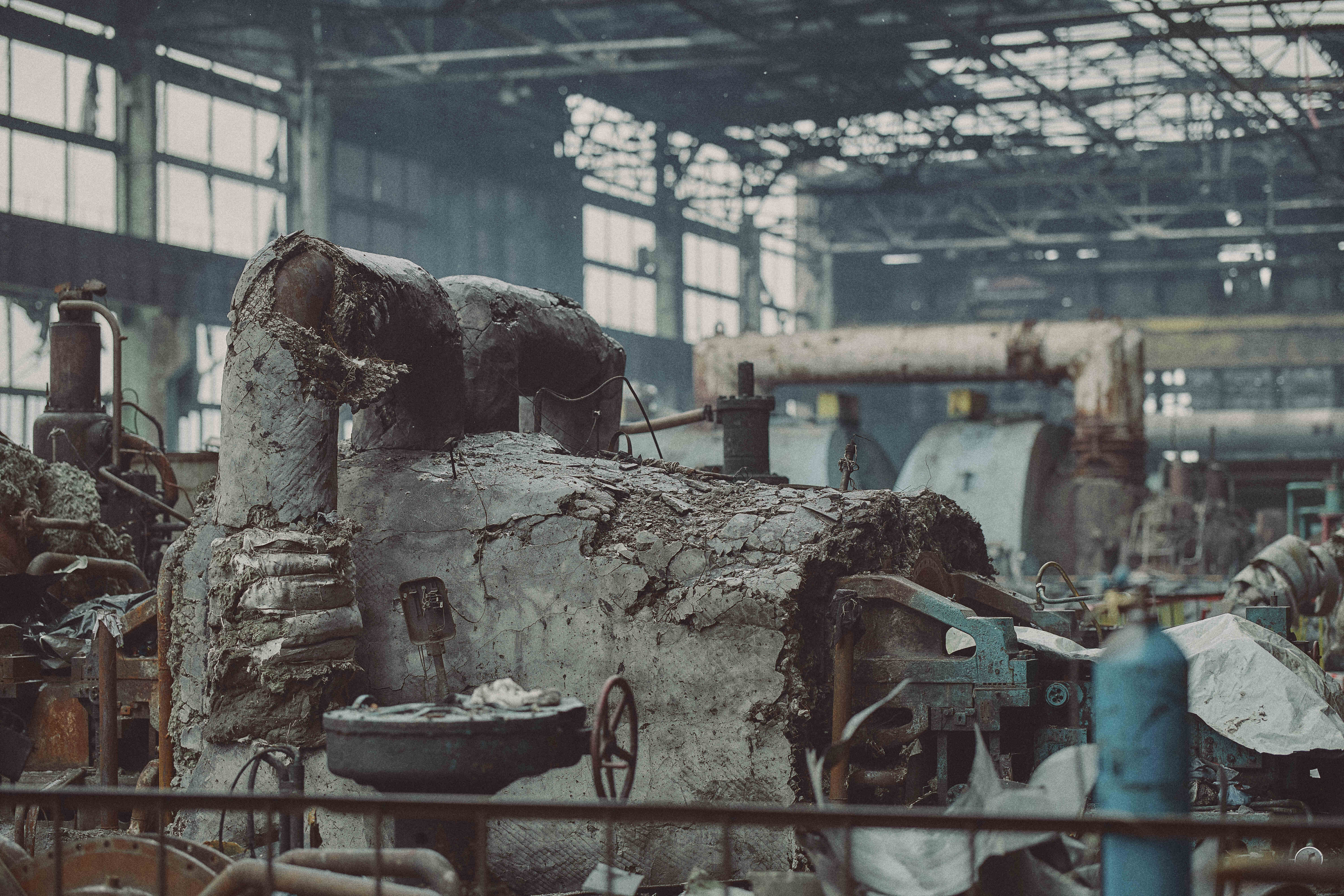 Thermal power plant with severe damage after the strike