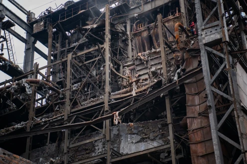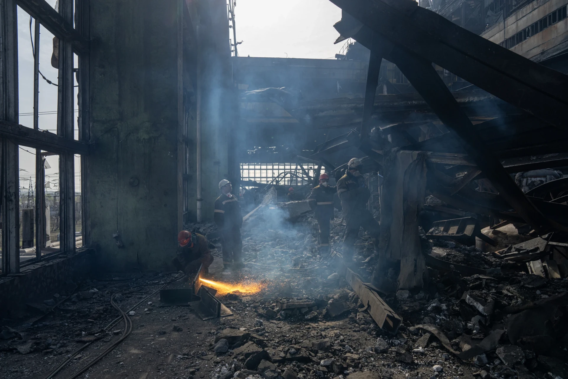 DTEK engineers brave smoke and dust to salvage what remains of their former workplace.
